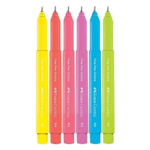A Caneta Fine Pen Colors Tropical FPBES6ZF da Faber Castell é a escolha perfeita para dar um toque colorido e elegante ao seu dia a dia! Com 6 cores incríveis, essas canetas de ponta fina proporcionam traços precisos e uniformes, ideais para escrita, desenhos, anotações e até mesmo trabalhos artísticos, aproveite!