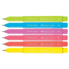 Caneta fine pen faber castell 6 cores tropicais ponta fina Caneta hidrográfica fine pen faber-castell 6 cores tons tropicais ponta fina 0.4mm