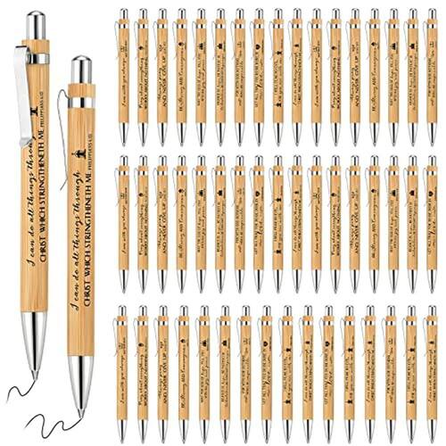 Canetas bíblicas Caneta cristã de bambu Caneta bíblica retrátil de madeira com citações inspiradoras de 1 mm Caneta esferográfica Caneta motivacional a granel para mulheres e homens, material escolar de escritório, presentes para escrever diários (10 unidades)