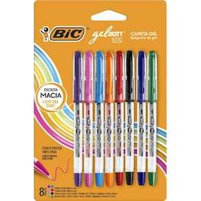 BIC, Caneta em Gel, Gelocity, Ponta Fina, 8 Cores