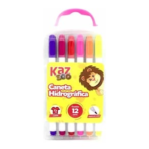 Caneta Hidrográfica 12 Cores Lavável Colorida Hidrográfica de ponta resistente e ótimo rendimento. Possui escrita macia com traços bem coloridos. Ideal para a escola, o trabalho e para o lazer, pois sua ponta permite colorir detalhes, fazer rascunhos e sublinhar com precisão. - Produto atóxico e tampa antiasfixiante - Cores vivas - Lavável - Ponta: 2.0mm - Contém: 12 Cores - Marca: KAZ