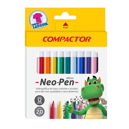 Traço colorido e durável para dar mais qualidade a seus desenhos. Quem nunca usou uma Neo-pen As famosas canetinhas atravessaram gerações e ainda hoje são companheiras inseparáveis dos alunos por todo país. Neo-pen é uma hidrográfica de ponta resistente e com ótimo rendimento. Ideal para crianças, possui escrita macia e traços bem coloridos. Neo-pen possui também tampa antiasfixiante e tampinha bem fixada para maior segurança. Tinta à base de água com grande reservatório.