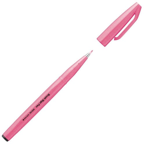 A caneta Sign Pen da Pentel tem alta qualidade e mistura características da esferográfica com pincel, resultando em uma ponta porosa que possibilita tanto o traço fino quanto o traço mais grosso, podendo ser usada para escrita comum e trabalhos com lettering e desenhos.