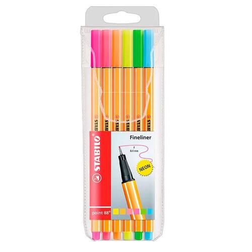 Caneta hidrográfica Fine Point 88/6-1 - cores neon - estojo com 6 unidades - Stabilo