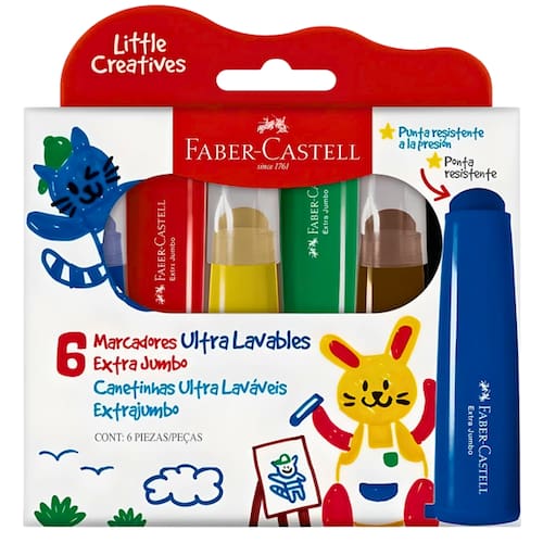 "Ponta resistente Tinta ultra lavavel Corpo ergonomico extra jumbo ideal para maos pequenas Abinha projetda na base especialmente para que o marcador nao role na mesa"