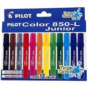 Com cores vibrantes e intensas, as canetinhas Color 850-L Junior, da Pilot, são ideais tanto para desenhar quanto para escrever. Ponta de poliéster de 4.0 milímetros e escrita de 1.8 milímetros. Tinta à base de água, lavável. Não recarregável.