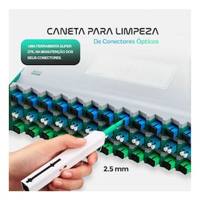 Caneta para limpeza de conectores fibra óptica. Esta caneta pode ser uma ferramenta super útil na manutenção dos seus conectores, ela remove poeira, óleo, ou qualquer resíduo presente no interno do conector que possa interferir na sua funcionalidade. Com capacidade de até 800 limpezas por unidade da caneta.