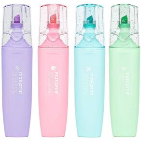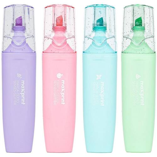 Marca texto com efeito brilhante e cheirinho que fica no papel.