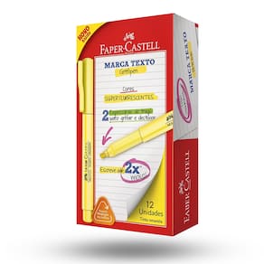 MARCA TEXTO AMARELO FLUORESCENTE FABER-CASTELL – KIT COM 6 UNIDADES (REF. MT-AMZF) O Marca Texto Faber-Castell é indicado para destacar informações em textos impressos ou escritos à mão, auxiliando na organização e na leitura de conteúdos. Possui tinta fluorescente na cor amarela, que proporciona boa visualização sem comprometer a legibilidade do texto. A embalagem contém 6 unidades, sendo uma opção prática para uso frequente em atividades de leitura, estudos e organização de materiais. CARACTERÍSTICAS DO PRODUTOMarca: Faber-Castell Modelo/Referência: MT-AMZF Tipo: Marca texto Cor da tinta: Amarelo fluorescente Quantidade: Kit com 6 unidades Corpo em formato confortável para manuseio Tampa com encaixe seguro INDICAÇÃO DE USODestaque de textos em livros, cadernos e apostilas Organização de estudos e leituras Uso em casa, escola ou ambientes de estudo