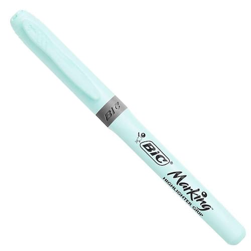 O marcador de texto com grip cor pastel bic marking veio para acompanhar a tendência de cor no mercado de papelaria. Suas cores são brilhantes e não desbotam com o tempo. Com ponta resistente, possibilita uma escrita firme, sem afundamento da ponta. Chanfrada, ela também permite a marcação em traçado duplo: fino para sublinhar e grosso para destacar. Grip emborrachado que permite melhor controle nas suas marcações. Tinta a base de água: não borra e não marca folha de trás. Torne seu dia a dia mais divertido com esse marcador diferenciadores: ponta chinfrada 1,5mm a 3,5mm. Alta durabilidade: ponta não afunda quando pressionada. Design moderno. Grip emborrachado para maior conforto. Especificações: material: plástico, metal e tinta cor: azul claro atenção: imagem meramente ilustrativa. Pode ocorrer mudanças no tom da cor para o produto real ou mudanças na embalagem sem aviso prévio por parte do fornecedor/fabricante. - atenção não recomendável para crianças menores de 3 três anos por conter parte s pequena s que pode m ser engolida s ou aspirada s e ponta s aguda s funcional is . Marca: Não Informado