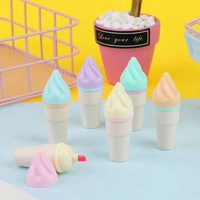 Marca texto com formato de sorvete na casquinha irá deixar os estudos mais leves, doces e refrescantes. São 6 cores: Amarelo, Rosa, Azul, Lilás, Verde e Laranja. Cores suaves com pigmentação ideal para marcar o que precisar. Acompanha estojo transparente.