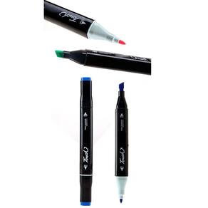 As canetas são de ponta dupla, duas pontas padrão, grossa e fina. Os marcadores são a base de álcool e não contém cheiro, ideal para crianças.