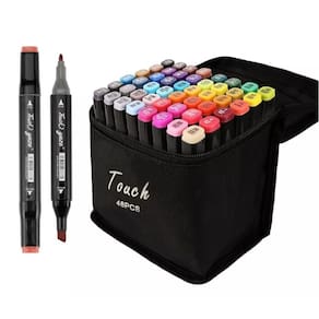 Tampas codificadas por cores e tampas: As tampas codificadas por cores facilitam a organização e identificação rápida das cores. O design ergonômico das canetas proporciona conforto no uso prolongado. Acompanha um estojo de transporte preto para facilitar o armazenamento.