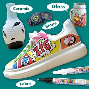 Madeira, Tela, Metal, Plástico, Couro, Cerâmica, Papel, Papelão, Foam Board, Vidro entre outras superfícies, o marcador Zig Posterman é multi uso, confiável que auxilia o artista na criação e execução do seu trabalho.