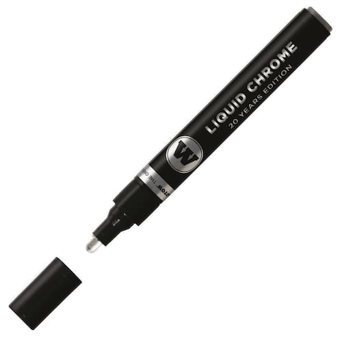 Marcador Molotow Liquid Chrome é o resultado de um longo processo de evolução da tinta Burner ™, e oferece efeito espelhado super realista quando aplicada em superfícies lisas não absorventes, graças à sua alta pigmentação. Sucesso absoluto entre artistas de lettering, ilustradores e grafiteiros.