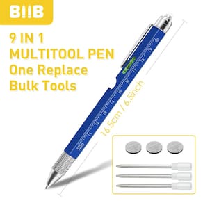 Caneta multiferramenta 9 em 1 - Presentes de Dia dos Pais da Esposa: a caneta ferramenta 9 em 1 é feita de material de alumínio super forte para ser usada por um longo tempo, devido ao seu tamanho pequeno e design exclusivo. Não é apenas um gadget legal no uso diário, mas também um presente de Dia dos Pais para homens, fácil de usar e transportar - Conjunto de canetas multiferramentas 9 em 1: a caneta multifuncional vem com 9 funções muito práticas: caneta esferográfica giratória/régua/chave de fenda (Flat & Phillips)/abridor de garrafas (pode atuar como suporte de telefone)/caneta/nível/lanterna LED - Presentes para homens que não querem nada: a caneta multiferramenta BIIB com caixa de presente personalizada é um presente exclusivo para pai, homens, marido e avô no aniversário, dia dos pais, aniversário e muito mais. Qualquer pessoa que receber uma caneta multifuncional BIIB como presente vai adorar - Ótimos presentes de aniversário para homens: a embalagem desta caneta 9 em 1 é requintada e vem com três recargas extras de substituição e três baterias de substituição, muito adequada como presente para seu ente querido no aniversário, dia dos pais e vida diária - Ótimo serviço e como usar: se você tiver alguma dúvida, e nós o atenderemos da melhor maneira. Sobre como tirar a caneta stylus e a chave de fenda. Gire a extremidade frontal da caneta para obter as ferramentas para uso