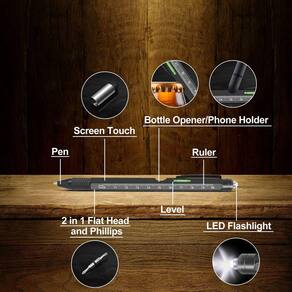 ?? Presentes masculinos de Natal — A caneta multiferramenta está equa com 9 funções úteis, luz LED brilhante, régua de precisão, nível de bolha, abridor de garrafas (porta-telefone), caneta, caneta esferográfica e chave de fenda de duas cabeças. A caneta de ferramentas integra várias funções em uma, facilitando seu trabalho