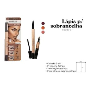 Caneta de Sobrancelha é 3 em 1 Ela possui lapiseira para quem gosta de preencher cada falha com detalhe, sombra e máscara para manter os pelos no lugar durante o dia todinho.