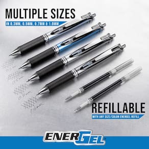 Caneta de gel líquido retrátil EnerGel RTX, pacote Creator Expressions, 0,7 mm, ponta de metal, linha média, tinta variada, pacote com 8 canetas (BL77XRIGBP8M) - A tecnologia de tinta de alto desempenho combina as melhores qualidades de tinta líquida e gel para uma experiência de escrita super suave - A tinta líquida em gel seca tão rápido que até escritores canhotos adoram - sem manchas, sem bolhas - Energel A tinta eL escreve com mais suavidade do que a marca líder* (*Testada internamente para ser uma escrita mais suave do que a caneta de gel líder em papel de escrita padrão) - Design cilíndrico elegante e moderno com detalhes em metal para uma aparência profissional — Alça sem látex para conforto e controle na escrita
