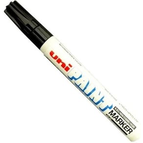Caneta Permanente Uni Paint Px 20 Preta Industrial - Uniball Caneta Paint Marker Uni Ball PX-20 marca em qualquer tipo de superfície, em qualquer cor. A versatilidade do Marcador Uni-Ball Paint Marker permite escrever sobre superfícies como metal, plástico, cristal, tela, sem perder sua cor intensa. Caneta Paint Marker Uni Ball PX-20 é o marcador mais popular Utilizado nas casas de diversos países, além de ser utilizado amplamente por profissionais da indústria, resiste à água e mesmo que a superfície que sofra altas temperaturas, a tinta não escorre, nem borra. Características: Ponta: triangular Traço: 2.2mm a 2.8mm Carga: 300m Tinta: base de solvente permanente Secagem de 1 a 2 minutos. Tecnologia Marca - Uniball Conteúdo - 1 Caneta Para preenchimentos e detalhes com tinta permanente, esta é a caneta.