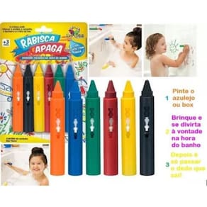 Modo de Usar: Pinte seu corpo, os azulejos e a banheira com os gizes Rabisca e apaga. Lave com água para remover o giz.