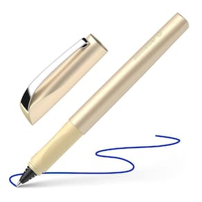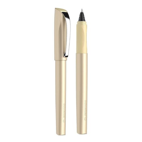 Caneta Rollerball Ceod Shiny Light Gold - Azul A nova Caneta Rollerball Ceod, tem o selo de qualidade made in germany da Schneider, com perfil ergonômico emborrachado e ponta de aço inoxidável de alta qualidade, com ponta de irídio de traço médio. Ceod é uma caneta rollerball com design moderno, corpo metálico e 5 opções de cores. Ela é equipada com um clipe de metal resistente e cartucho de tinta padrão, azul royal. Igualmente adequado para destros e canhotos.