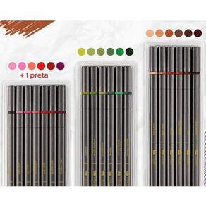 Tanto nos estudos como nos planners, a ideia de utilizar uma paleta de cores análogas ajuda na memorização e organização dos assuntos, a paleta STUDY Outono traz degradês de cores inspiradas nesta estação do ano e possibilita identificar cada matéria por cor com suas 3 paletas de 6 tons cada + 1 caneta preta.