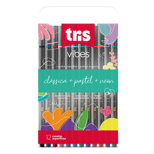 A caneta superfina Vibes possui ponta metálica de feltro resistente, traço 0.4mm e corpo quadrado super estiloso!