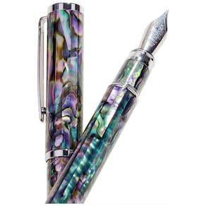 PRESENTE MARAVILHOSO E IMPRESSIONANTE A caneta tinteiro de concha de abalone artesanal LACHIEVA LUX é realmente um presente do mar. É feito de concha de abalone real incrustada no barril de base de metal e coberta com várias camadas de resina de boa qualidade. caneta é elegante e confortável na mão. É uma caneta de presente elegante e única para sua família, amante e parceiros de trabalho. O melhor presente para o Natal e todos os feriados. QUALIDADE SUPERIOR Caneta tinteiro Shell com o famoso NIB SCHMIDT FH452 de fabricação alemã garante uma experiência de escrita suave e boa. Observe que esta caneta tinteiro não pode ser trocada por outras pontas pelos usuários Marca: Não Informado