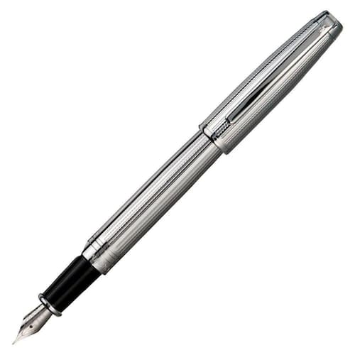 Caneta Tinteiro Crown Versalles Yw39032S Prata Prata cromado com detalhes pretos e cromados tem sua escrita com conforto e maciez. Sistema de abertura por tampa e cartucho de tinta à base de água.
