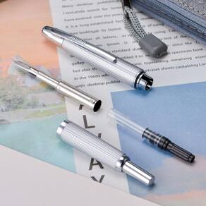 Especificações: - Marca: Jinhao - Material: metal. - Ponta: Ponta fina de irídio (aproximadamente 0,50 mm) - Tinta: serve para todas as tintas engarrafadas sem carbono ou cartuchos de tinta calibre 5,5 mm - Comprimento: 141,5 mm / 5,57 polegadas - Diâmetro: 13 mm - Peso da caneta: 33 g Embalagem: - 1 caneta-tinteiro. - 1 conversor de tinta (no barril da caneta). - 1 caixa de metal. Aviso: - Esta caneta-tinteiro não contém cartuchos de tinta para segurança em trânsito. - Cada caneta é verificada à mão e escrita por um artesão, e pode haver um pouco de resíduo de tinta na ponta. - Design elegante de cromo fosco escovado: a caneta-tinteiro Jinhao 10 sem tampa em cromo fosco escovado exala um charme puro e sofisticado, perfeita para profissionais que buscam um visual refinado e discreto. Seu acabamento todo prateado apresenta uma estética minimalista e impactante. - Escrita suave com ponta artesanal: experimente o prazer de escrever com uma ponta fina finamente trabalhada que oferece uma experiência de escrita suave e suave, perfeita para uso diário e tarefas de assinatura. - Mecanismo prático ativado por pressão: uma simples pressão estende a ponta para uso imediato. O "obturador" embutido na abertura da ponta oferece excelente vedação quando retraída, evitando que a tinta seque ou vaze. - Estrutura estável e durável: o mecanismo de mola interno do botão de pressão garante que a ponta permaneça firmemente no lugar durante o uso, oferecendo uma experiência de escrita estável e confortável sem qualquer movimento indesejado. - Embalagem elegante para presente: a caneta é acompanhada por uma elegante caixa de metal e papel, o que a torna a escolha ideal para uso pessoal ou como um presente sofisticado.