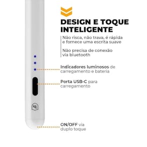 O Palm Rejection, ou rejeição da palma, é principal característica desta caneta. Ela permite que você escreva e desenhe com total liberdade, sem se preocupar com toques acidentais da palma da mão na tela. A caneta reconhece apenas o toque intencional da ponta, tornando sua experiência de uso livre de interrupções indesejadas.