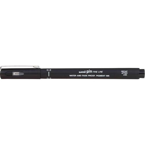 Caneta Uni-Ball Mitsubishi Uni Pin 0,3Mm Preta Unidade Ponta porosa. Ideal para desenho profissional. Embalagem contém 01 unidade A caneta nanquim uni pin 200 uni-ball é uma caneta técnica fine line, utilizada em desenho técnico e artístico, possuindo ponta de poliéster com ponteira de metal ideal para escrita e traços precisos no desenho, sua tampa possui clip de metal para prender no bolso, tinta preta resistente à água e a luz. Ref. Pin 03-200 Imagem Ilustrativa.