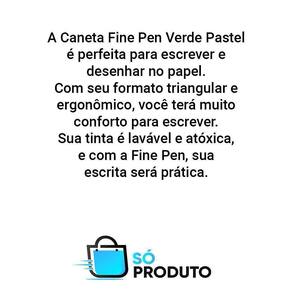 A caneta fine pen verde pastel é perfeita para escrever e desenhar no papel. Com seu formato triangular e ergonômico, você terá muito conforto para escrever. Sua tinta é lavável e atóxica, e com a fine pen, sua escrita será prática. Ela é da faber-castell, que é de primeira qualidade, e com a fine pen, sua escrita será verdadeira beleza. Ideal para a escrita e desenho, e com precisão e conforto a faber-castell tem um padrão de qualidade altíssimo, e com a fine pen, seu trabalho será sempre lindíssimo as imagens são meramente ilustrativas Ean: 7898704415717