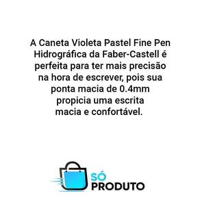 A caneta violeta pastel fine pen hidrográfica da faber-castell é perfeita para ter mais precisão na hora de escrever, pois sua ponta macia de 0.4mm propicia uma escrita macia e confortável. O design moderno e arrojado característico da linha fine pen garante uma escrita sem falhas ou borrões. A tinta desta caneta que tem um formato triangular e ergonômico é completamente lavável e atóxica. Ela é ideal para a escrita e para desenho e conta com o alto padrão de qualidade que apenas é proporcionado pela faber-castell. As imagens são meramente ilustrativas. Ean: 7898704415687