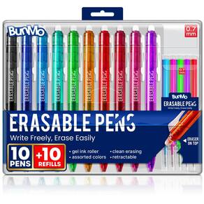 Descubra a liberdade de escrever, apagar e reescrever com as 10 canetas de gel coloridas apagáveis da BunMo. Projetadas para experiências de escrita perfeitas, essas canetas de gel apagáveis permitem que você cometa erros e os corrija com facilidade, graças à sua tinta apagável avançada. Perfeito para [diários de bala, notas de estudo, planejadores] ou qualquer escrita que exija flexibilidade, estas são as melhores canetas para escrita suave! Você tem 10 cores vibrantes mais recargas, garantindo um suprimento duradouro. Com a proteção exclusiva da ponta de cera BunMo, suas canetas de gel apagáveis multicoloridas estão prontas para funcionar sem secagem prematura. A embalagem ecológica e reutilizável facilita a organização e cada conjunto inclui um cartão de instruções para ajudar você a começar. Se você estiver trabalhando, estudando ou sendo criativo, essas canetas coloridas apagáveis são a melhor ferramenta para uma experiência limpa e sem erros. Aproveite o poder da escrita sem erros hoje! - Seleção de cores vibrantes: aproveite um pacote de 10 canetas apagáveis com cada caneta oferecendo uma cor única e viva, do preto clássico e azul aos tons divertidos como rosa, verde e roxo claro. Perfeito para adicionar cor e personalidade ao seu kit de diário, notas de faculdade ou no escritório. - Sem erros, basta apagar! : Feitas com tinta de gel apagável avançada, estas canetas esferográficas apagam de forma limpa sem resíduo. Basta usar a extremidade da borracha para corrigir rapidamente qualquer erro, tornando essas canetas de tinta de gel a melhor escolha para sua próxima nota, desenho ou rabisco! - Longa duração com refis incluídos: cada conjunto de canetas de gel apagáveis inclui 10 refis de tinta de cor correspondente, dando a você o dobro do tempo de escrita e valor. Ideal para escritores prolíficos ou artistas que procuram canetas apagáveis duráveis e resistentes que duram! - Proteção inovadora da ponta de cera: cada caneta de gel tem uma ponta de cera para manter a tinta fresca e evitar a secagem antes de usar. Desfrute de desempenho confiável e fluxo de tinta suave sempre que estiver pronto para escrever. - Embalagem elegante e ecológica: embalado em uma elegante caixa de PVC, este conjunto adiciona um visual profissional que torna essas canetas finas um excelente presente para escritores. Armazene e carregue facilmente estas canetas para diário e refis para criatividade e produtividade em movimento.