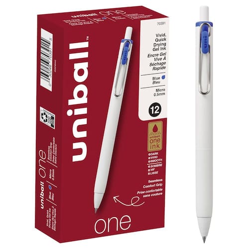 - O pacote inclui 12 canetas de gel retráteis uni-ball one com um micro ponto (ponta de 0,5 mm) com tinta azul