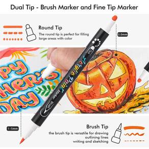 ZSCM 48 cores canetas de tinta acrílica de ponta dupla, pintura de abóbora de Halloween fina e ponta de pincel caneta de tinta acrílica para crianças adultos pintura vidro cerâmica madeira lona - Canetas de tinta acrílica de ponta dupla – As canetas marcadoras de tinta acrílica ZSCM de 48 cores com mais 50% de tinta acrílica altamente pigmentada são projetadas com cilindro transparente que mostra a tinta restante no tempo. Longa duração e seca rapidamente para produzir um acabamento opaco e brilhante em quase todas as superfícies. Você pode até misturar cores. Ideal para uso interno e externo. - Ponta média, fácil de controlar – canetas marcadoras de tinta acrílica com ponta de 2 a 3 mm, fáceis de controlar, fluem suavemente com ótima cobertura. Tinta acrílica altamente pigmentada resulta muito opaca. Adequado para maiores detalhes, escrita e retoque. - Versátil, à prova d'água em qualquer superfície – As canetas marcadoras de tinta acrílica à base de água funcionam bem em quase qualquer superfície. Amplamente utilizado em tecido, tecido, lona, metal, cerâmica, madeira tratada, plástico, pedra, terracota, argila de polímero, rocha mais. Perfeito para pintura de pedras, tela, madeira, vidro, plástico, metal, cerâmica, tecido, caneca, faça você mesmo, cartão, álbum de fotos, projeto escolar. - Fique bem organizado e ótimo presente – cada conjunto de canetas de acrílico é organizado no recipiente de lona incluso! Presente maravilhoso para aniversário, formatura, Halloween, Natal, Dia de Ação de Graças ou para qualquer pessoa que ame desenhar, pintar, esboçar, escrever, escrever no diário, escrever em pincel, artesanato, rabiscos, pintura em aquarela, ilustrações. - Promessa de serviço: o cliente é nossa maior prioridade. Mantenha as tampas apertadas após cada uso. Se você não estiver satisfeito por qualquer motivo, informe-nos e responderemos dentro de 24 horas.