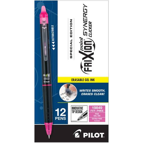 Canetas de tinta gel PILOT, FriXion Synergy Clicker, apagáveis, recarregáveis e retráteis, ponta extra fina de 0,5 mm, pacote com 12, tinta rosa