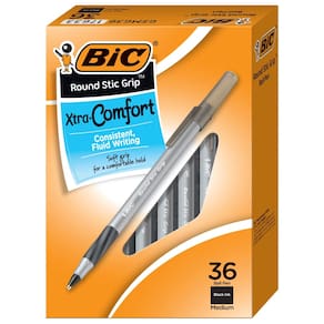 BIC Canetas esferográficas pretas redondas Stic Grip Xtra Comfort, ponta média (1,2 mm), pacote com 36 unidades, canetas de escrita perfeitas com aderência macia para excelente conforto e controle