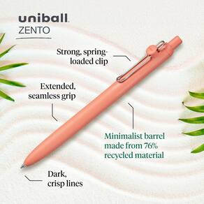 Uni-ball Canetas esferográficas Zento de tinta gel, 2 canetas pretas de ponta média lisa, canetas coloridas japonesas, cores boho - Canetas médias retráteis de 0,7 mm criam uma experiência de escrita ultra suave a cada traço - Tinta de gel líquido de tingimento rápido e extremamente vívida oferece fluxo de escrita suave que evita manchas - O tambor minimalista elegante tem uma aderência macia sem costura e é feito de 76% de material reciclado - O clipe funcional com mola se fixa facilmente a bolsos e cadernos - Cores cuidadosamente selecionadas e modernas evocam uma sensação de tranquilidade e atenção plena