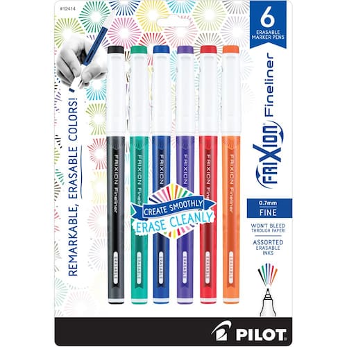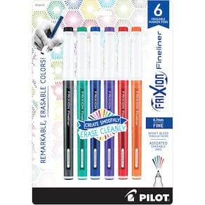 Pilot, Canetas marcadoras FriXion Fineliner apagáveis, ponta fina de 0,7 mm, pacote com 6, cores diversas