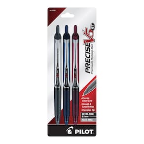 Crie linhas e marcações precisas e suaves com esta caneta ponta extrafina com tinta de gel líquido. A empunhadura de borracha oferece controle aprimorado, bem como um espaço de aderência confortável e natural que ajuda a reduzir a fadiga ao escrever durante longas sessões. A tinta gel líquida permanente oferece escrita suave e marcas de longa duração. A ponta extrafina oferece linhas precisas. A tecnologia Precision Point ajuda a minimizar o salto. O design retrátil permite que você retire a ponta com apenas um clique para evitar vazamentos de tinta. A aderência de borracha oferece controle e conforto, ajudando a reduzir a fadiga da escrita. O clipe de bolso facilita o transporte. O design recarregável permite que você continue usando a caneta quando o suprimento de tinta estiver esgotado. A tinta resistente a manchas protege contra manchas. Pacote com 3 canetas esferográficas retráteis precisas V5 RT ponta extrafina (0,5 mm) tintas pretas, azuis e vermelhas recarregáveis – projetadas para serem usadas repetidamente, ajudando você a evitar descartáveis de uso único e potencialmente economizar dinheiro.
