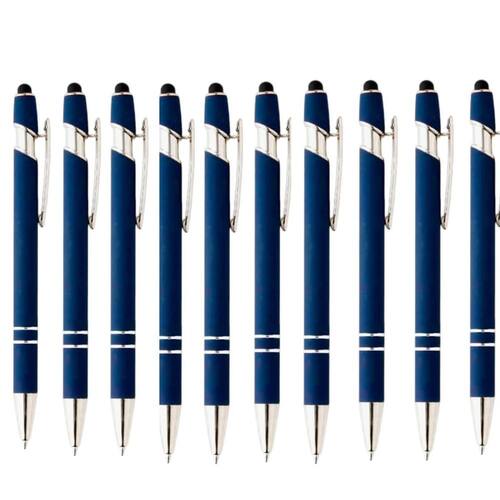 Caneta esferográfica 2 em 1 com ponta touch. Design elegante e funcional. Escrita suave com ponta fina. Ponta touch ideal para telas sensíveis. Acabamento em borracha. Acionamento por clique. Carga esferográfica azul 1.0mm.Vendido e entregue por Olist Store