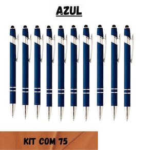 Canetas touch kit 75 - borracha suave para proteção da tela Cor: azul Bem vindo a nossa loja A lualki store tem os melhores produtos para seu uso. Se atentamos para total satisfação do cliente. Caneta metálica touchscreen sem gravação A caneta touch esferográfica 2 em 1 é perfeita para quem busca praticidade no dia a dia com um design elegante e funcional, ela combina a escrita suave de uma caneta esferográfica de ponta fina com a versatilidade de uma ponta touch, ideal para telas sensíveis de smartphones, tablets e outros dispositivos. Caneta metálica touchscreen com acabamento à borracha, acionamento por clique e carga esferográfica azul 1.0mm. Largura:1,10 Altura:13,90 Medidas aproximadas para gravação cxl :0,7 cm x 3,5 cm Peso aproximada:18 g Marca: Não Informado