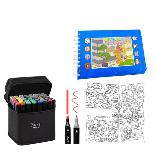 Este kit já acompanha um conjunto com 48 canetinhas coloridas, ou seja, você não precisa se preocupar com nada! É só abrir e começar a colorir!