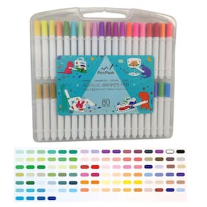 1 Estojo Canetinha Caneta Marcador 80 Cores Tinta Acrilica Permanente