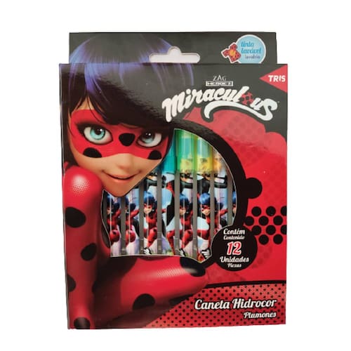 Canetinhas hidrocor de ponta fina Miraculous da Tris.