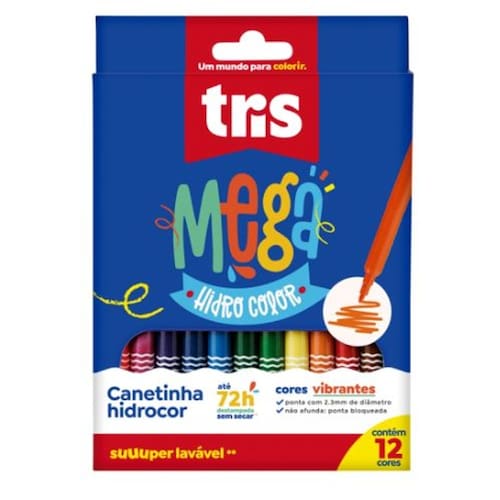 Cores ultra intensas! Fica até 72h destampada sem secar; possui ponta bloqueada e tinta super lavável. 12 cores!