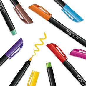 As Canetinhas Hidrográficas Faber-Castell da linha SuperSoft têm design arrojado e moderno, com ponta pincel (brush) supermacia, perfeita para técnicas de Lettering e desenhos artísticos. A embalagem é reutilizável e 100% reciclável, e a tinta é lavável e atóxica.